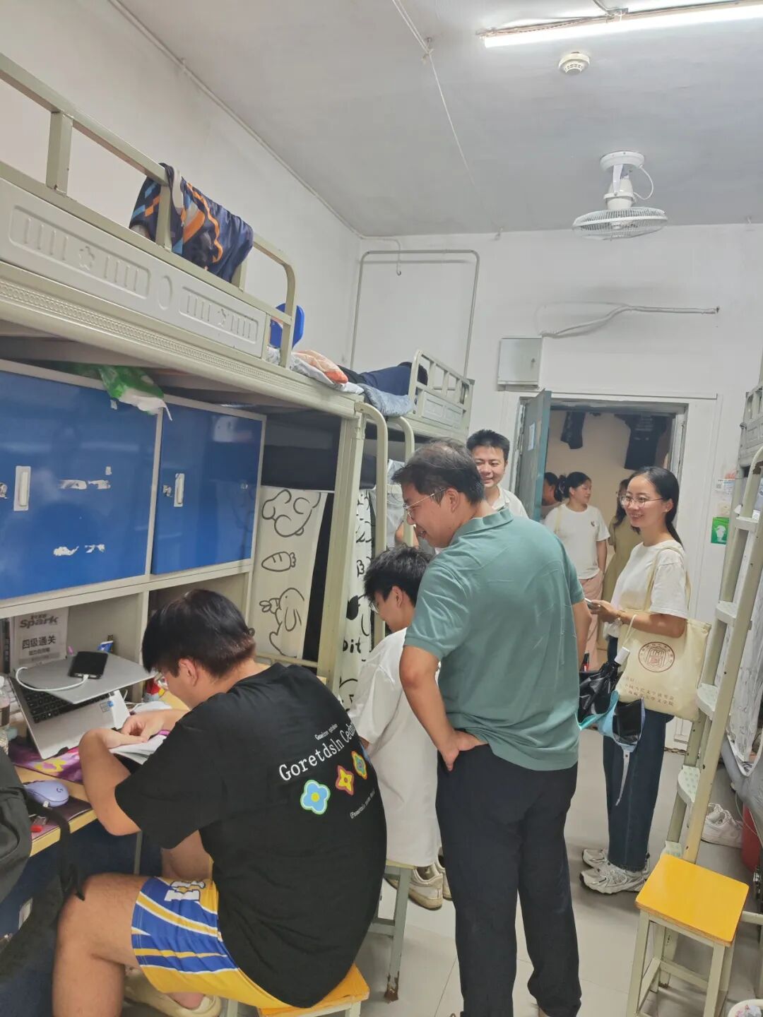 在国庆佳节即将来临之际,为切实保障学生寝室安全,筑牢校园安全防线,同时传递系部对学生的关怀与温暖。9月30日,我系领导带领辅导员、班主任们深入学生寝室开展安全专项检查与学生关爱活动。